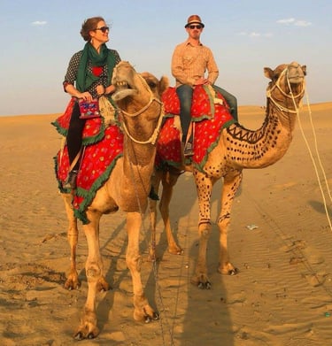 Embark on a camel safari in Jaisalmer, the ultimate way to explore the golden dunes of the Sam Sand Dunes. Ride the ship of the Thar Desert and immerse yourself in traditional desert life. Among the top desert activities in Jaisalmer, this adventure offers a unique glimpse into Rajasthan's breathtaking landscapes. Book your desert safari for an unforgettable experience!