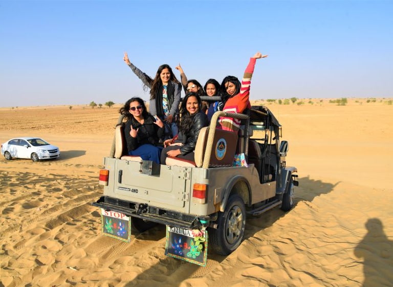 Experience the thrill of a Jeep Safari in Jaisalmer as you explore the vast, golden sand dunes. Feel the adrenaline rush while cruising through the desert, witnessing breathtaking landscapes, and enjoying the stunning sunset. A perfect adventure for those seeking excitement and an unforgettable journey through the iconic Sam Sand Dunes. Book now for a memorable desert experience!.
